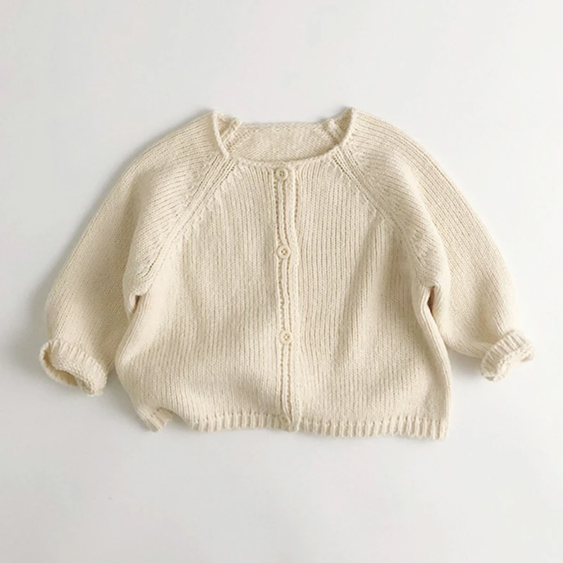 Casual Kids Spring Cardigan Sweater Hand Knitted Cotton Outwear for Girls